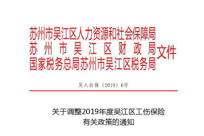 關于調整2019年度吳江區工傷保險有關政策的通知